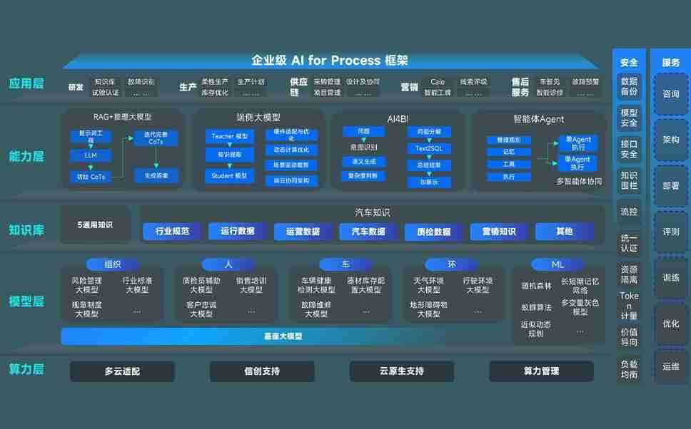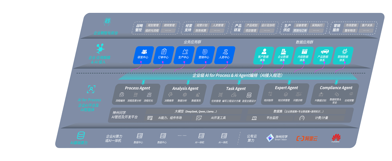 AG尊龙凯时问学智车解决方案是一套基于AI技术的汽车行业智能化系统,,,覆盖从底层算力到顶层AI应用的全栈方案。。。。方案由算力层、、、、模型层和应用层组成:算力层,,,方案支持多种一体机配置,,具备云端灵活部署、、、多云适配以及动态优化计算资源的能力;模型层,,,,AG尊龙凯时问学平台版提供了企业级AI应用一站式构建与管理平台,,,,支持基于后训练强化技术的汽车企业专属模型的训练、、评测和运营;应用层,,,AG尊龙凯时问学DeepSeek版提供包括超级员工、、、智能招采、、、智能营销、、智能客服、、AI for BI等一系列解决方案,,可助力汽车行业实现数字化转型,,,让管理更智能、、响应更敏捷。。
